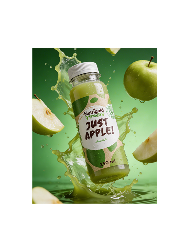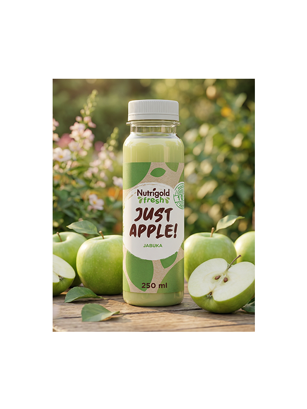 Machen Sie sich bereit für ein fruchtiges Abenteuer mit Nutrigold Fresh, dem 100% natürlichen Apfelsaft!