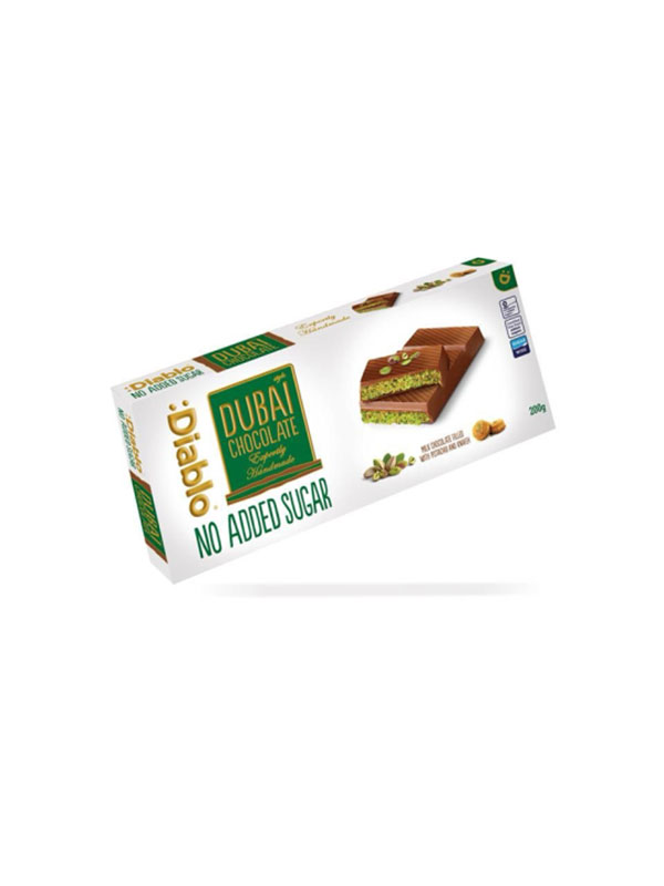 Wir präsentieren Ihnen Diablo Dubai Schokolade ohne Zuckerzusatz. Sie verzaubert mit ihrem vollen Geschmack und ihrer perfekten Textur. Vergessen Sie gewöhnliche Schokolade – diese ist etwas ganz Besonderes!