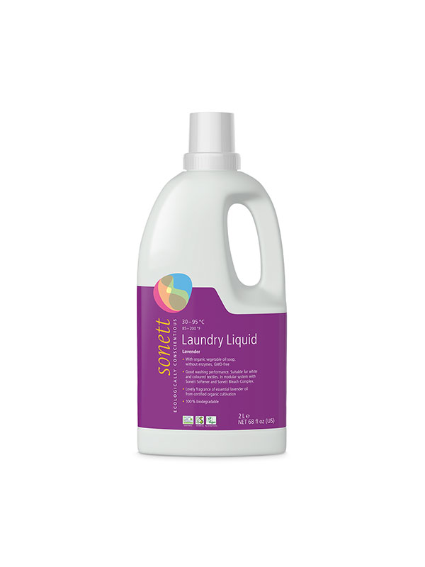 Vergessen Sie hartnäckige Flecken und verblasste Farben mit dem umweltfreundlichen Sonett-Waschmittel mit dem unwiderstehlichen Lavendelduft in der optimalen Menge von 2 Litern!