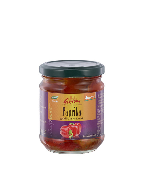 Genießen Sie das ganze Jahr über die Früchte des Sommers mit in Pflanzenöl gegrillten Bio-Gustoni-Paprika!