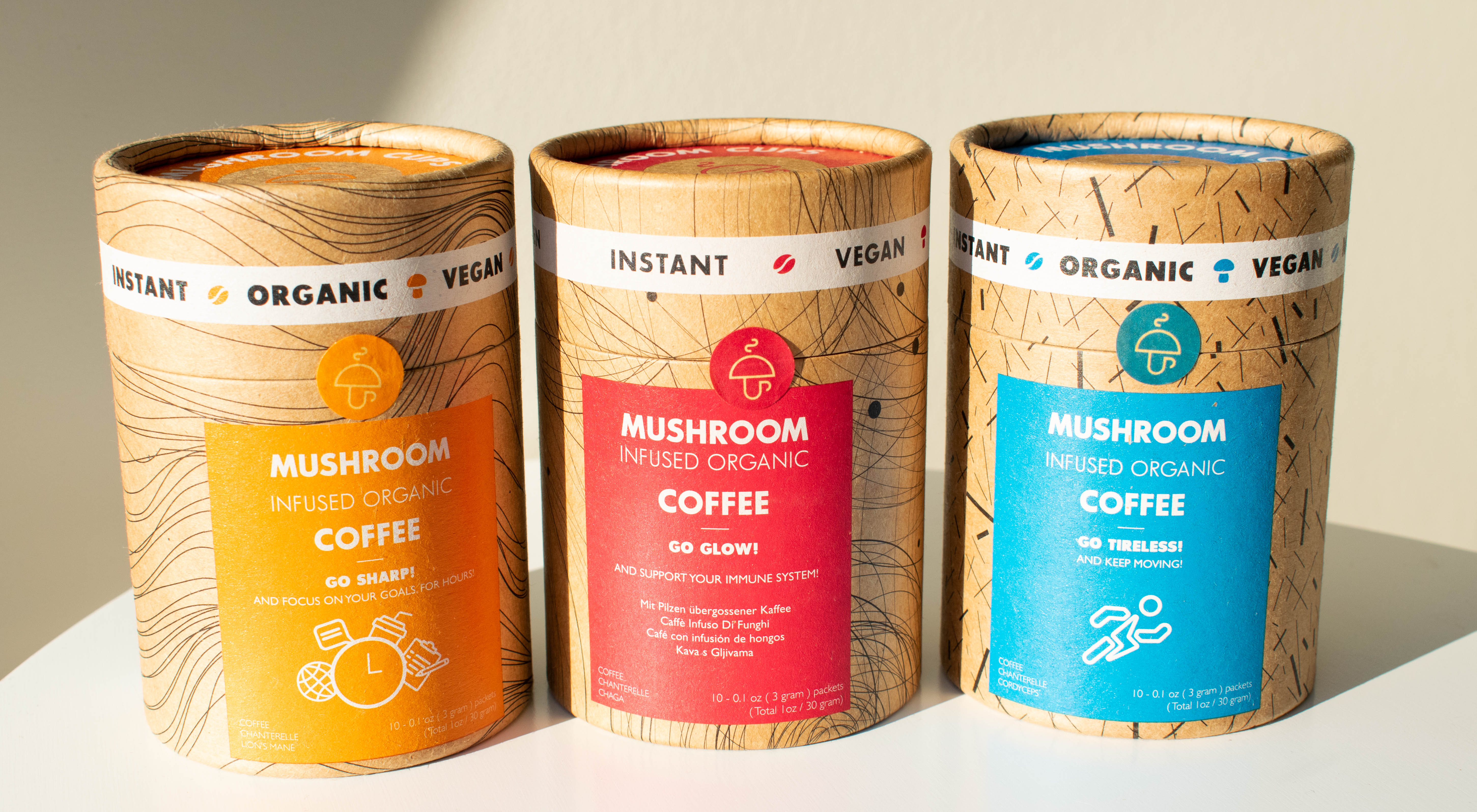 Jedes ihrer Produkte enthält eine Kombination aus Bio-Kaffee und Pfifferlingen, während der andere Pilz anders ist. Daher sind in jedem der Produkte nur 3 Zutaten enthalten – und in keinem der Produkte sind Geschmacksverstärker, Konservierungsstoffe, Zusatzstoffe oder Zucker enthalten.