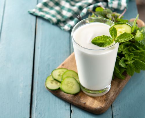 Ein Drink aus Joghurt und Gurke hilft dabei, überschüssiges Wasser und Schadstoffe aus dem Körper zu entfernen. Er ist leicht verdaulich, stärkt das Immunsystem und die Probiotika im Joghurt unterstützen eine gesunde Verdauung sowie den Stoffwechsel.