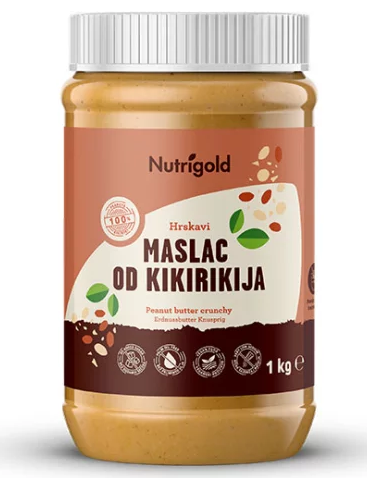 Nutrigold Butter ist genau das: vollkommen natürlich und zu 100% aus Erdnüssen hergestellt. Sie ist in zwei Varianten erhältlich, „knusprig“ und „streichzart“, die sich in ihrer Textur unterscheiden.