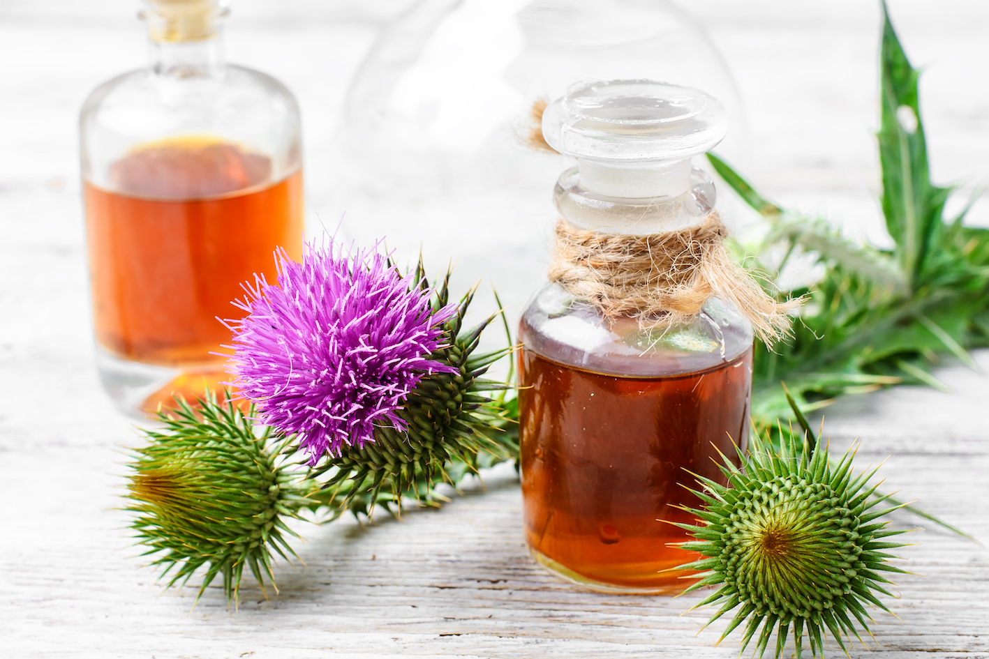 Mariendistel ist eine Pflanze mit antioxidativen und entzündungshemmenden Eigenschaften und ihr Öl wird häufig zur Entgiftung des Körpers, insbesondere der Leber, verwendet.