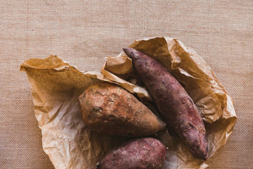Diese besondere Sorte stammt von der japanischen Insel Okinawa, deren Einwohner für ihre hohe Lebenserwartung bekannt sind. Dort ist sie ein fester Bestandteil der traditionellen Ernährung. Ihre violette Schale deutet auf einen hohen Gehalt an Anthocyanen hin. Dabei handelt es sich um sekundäre Pflanzenstoffe, die für ihre antioxidativen Eigenschaften geschätzt werden. Sie enthält außerdem Eiweiß, Beta-Carotin sowie die Vitamine B6, C und E. Darüber hinaus liefert sie Mangan und Kalium.