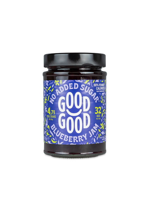 Heidelbeeren 57 %, Wasser, Süßungsmittel (Erythrit, Steviaglycosid), natürliches Verdickungsmittel (Pektin), Zitronensäure, Konservierungsmittel (Kaliumsorbat), Säureregulator (Calciumcitrat).