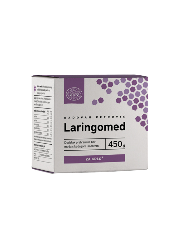 Laringomed ist ein Nahrungsergänzungsmittel mit verschiedenen Blütenpulversorten, Honig und Propolis als natürliches Antibiotikum unter Zusatz von ätherischem Salbei- und Minzöl. Es beseitigt Halsschmerzen sehr schnell und ermöglicht eine schnelle Genesung. Die hohe Konzentration an Propolis wirkt als natürliches Antibiotikum, neutralisiert den Entzündungsherd und wirkt antiseptisch. Die Vitaminbasis des Blütenpulvers auf Honigbasis stärkt die geschwächte Immunität. Aufgrund ihrer Zusammensetzung wirkt Minze antiseptisch und schmerzstillend und ist offiziell als Arzneimittel zur oralen Verabreichung bei Erkältungen und Husten zugelassen. Salbei hat eine beruhigende und wohltuende Wirkung auf den Hals, es ist ein natürliches Antiseptikum, das in Kombination mit Propolis als natürlichem Antibiotikum Halsschmerzen schnell und effektiv lindert.