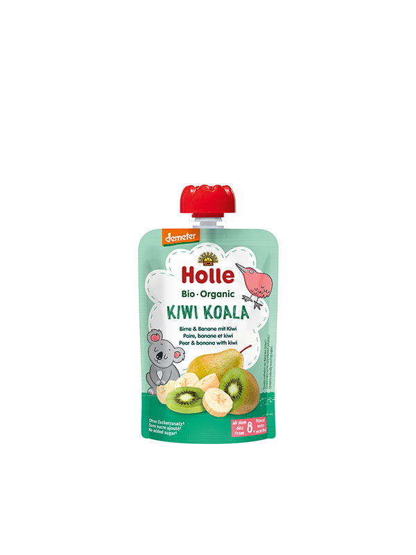 Überraschen Sie Ihre Kinder mit dem unwiderstehlichen Holle Kiwi Koala Fruchtpüree aus 100% kontrollierten Zutaten.