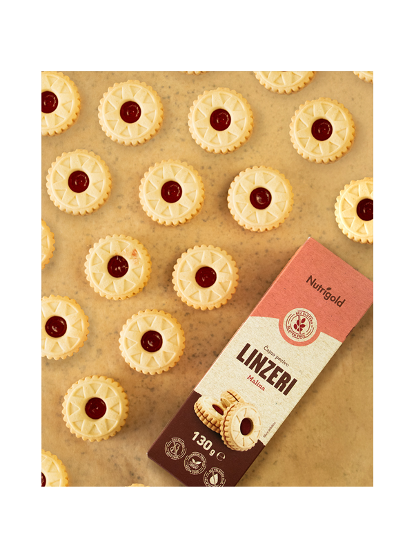Linzer sind ein Teegebäck, welches traditionell die Weihnachtszeit markiert. Sie sind klein und lecker und in verschiedenen Formen erhältlich, und ihr Geschmack erobert alle Familienmitglieder. Mürbeteiggebäck in Kombination mit Marmelade kann man kaum widerstehen, deshalb hat Nutrigold einen Keks nach einem speziellen Rezept mit Himbeerfruchtfüllung zubereitet.