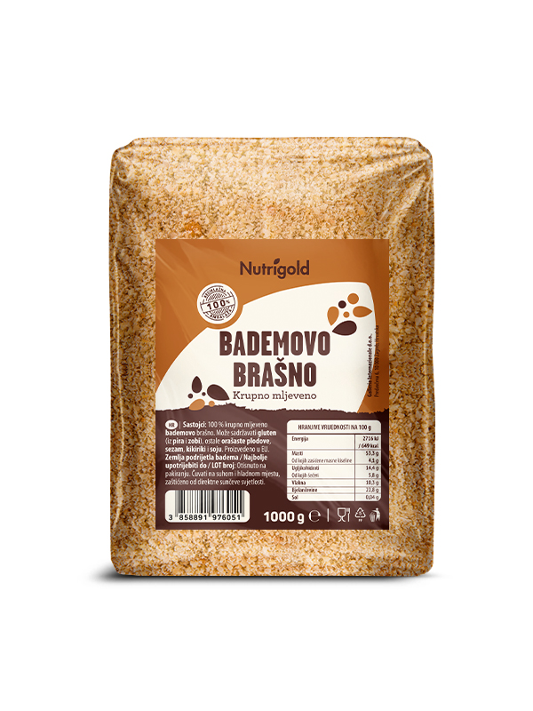 Für das gröber gemahlene Mandelmehl von Nutrigold werden ungeschälte Mandeln bewährter Qualität verwendet, die auch nach dem Mahlen ihren Nährwert behalten. Das Mehl hat folgende Vorteile: