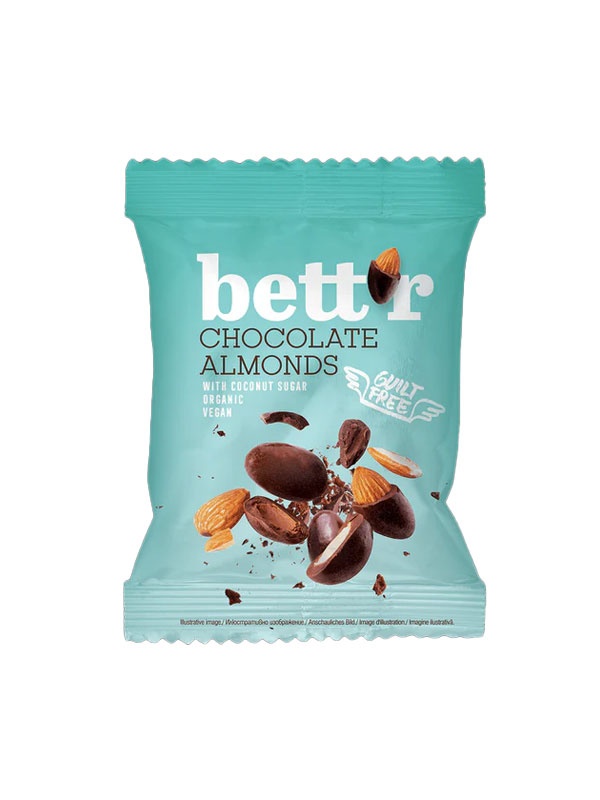 Bett'r Mandeln aus biologischem Anbau sind mit jedermanns Lieblingsschokolade überzogen und sorgen für den perfekten süßen Snack, der sowohl bei Jung als auch bei Alt beliebt ist.