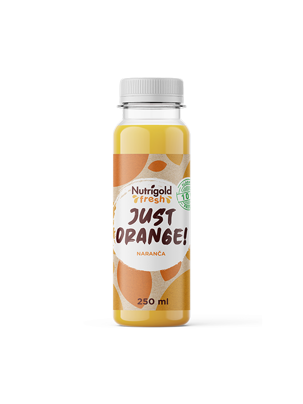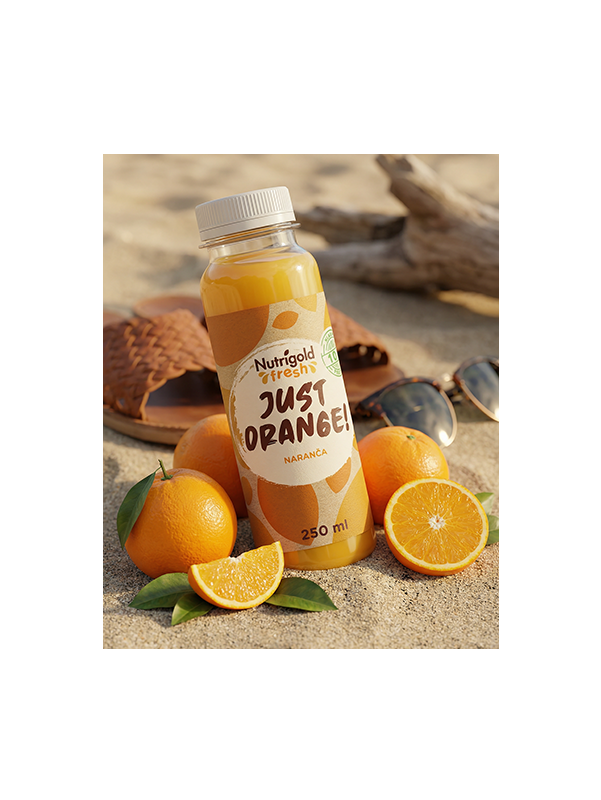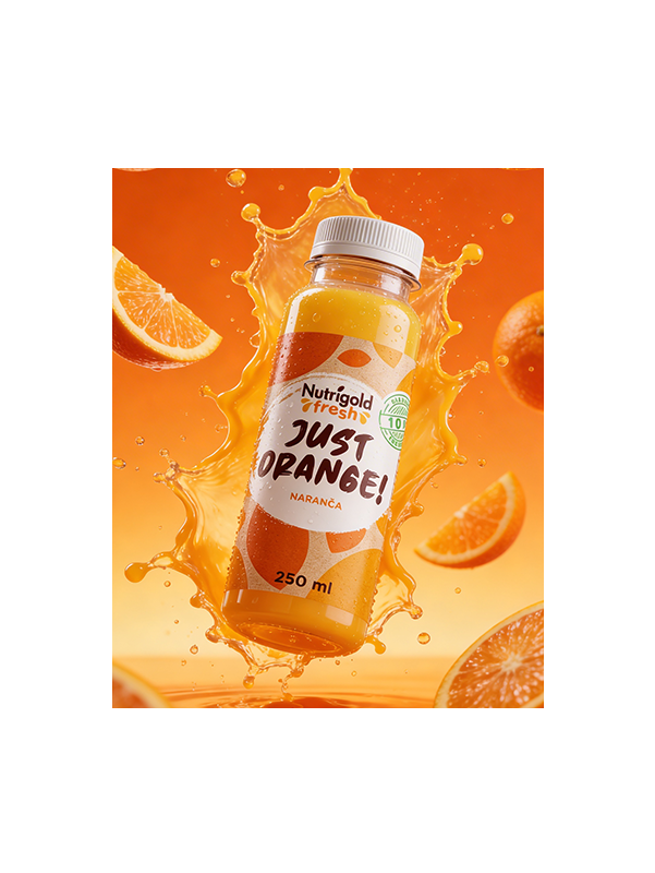 Wir präsentieren Ihnen Just Orange, einen kaltgepressten 100% Orangensaft aus der Nutrigold Fresh-Linie – die perfekte Erfrischung für jeden Tag!