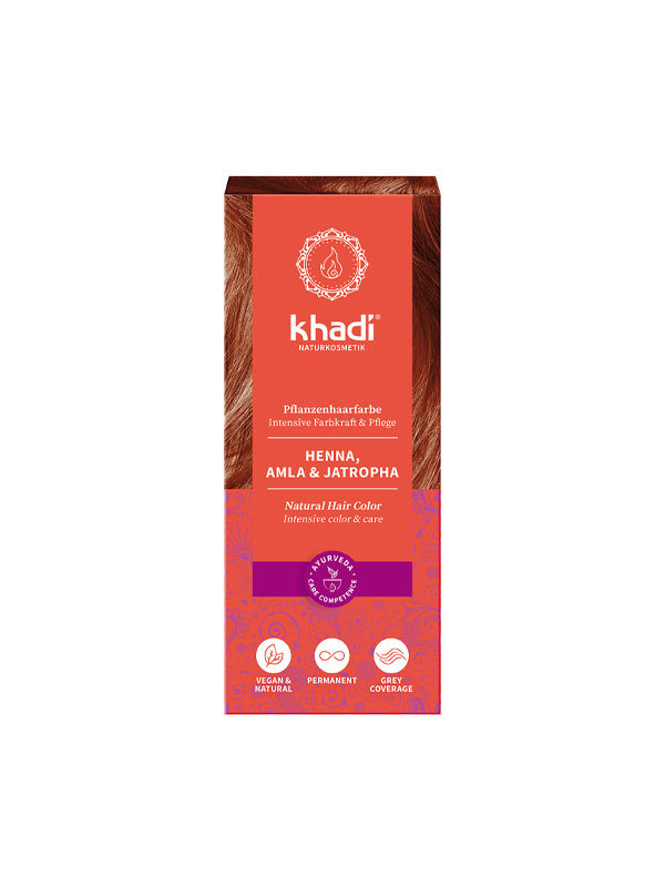 Mit der Pflanzenhaarfarbe Khadi lassen sich wunderschöne Rottöne von hellrot bis verführerisch dunkelrot zaubern. Durch die Kombination von Henna, Amla und Jatropha entsteht ein dunklerer Farbton als mit reinem Henna. Bei sehr dunklem Haar kann das Ergebnis von braun bis rotbraun variieren, während bei hellerem Haar intensivere Rottöne erzielt werden.
