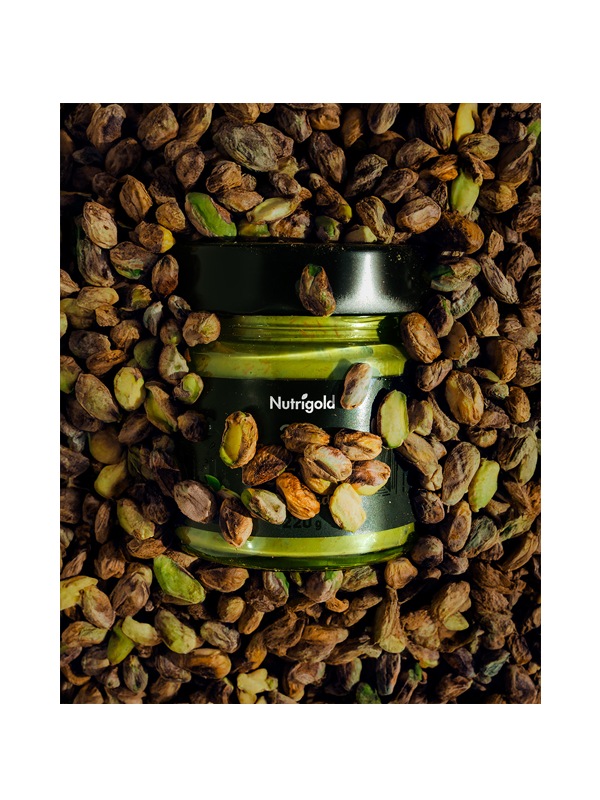 Dieser Nutrigold Aufstrich kombiniert den intensiven Geschmack gerösteter Pistazien mit knusprigem Kadaif, traditionellen dünnen Teigsträngen aus der Küche des Nahen Ostens, und sorgt so für einen Kontrast der Texturen und einen reichen Geschmack, der vom ersten Bissen an fesselt!
