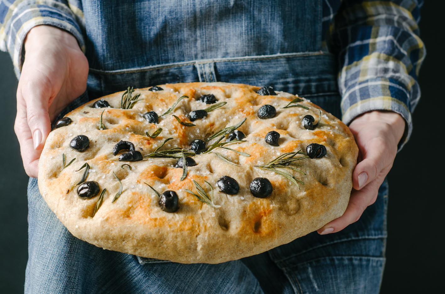 Diesmal haben wir uns für eine echte mediterrane Focaccia mit Olivenöl, schwarzen Oliven und Rosmarin entschieden. Genießen Sie einfach! ![]()