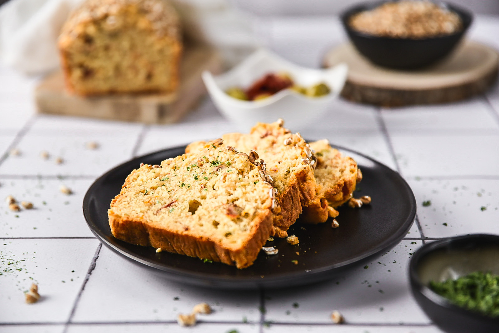 Da es keine Hefe enthält, muss es nicht aufgehen, was die Zubereitungszeit deutlich verkürzt. Für zusätzliches Aroma und Saftigkeit haben wir dem Brot außerdem Oliven und getrocknete Tomaten hinzugefügt. Es ist also eine wahre mediterrane Rhapsodie aus Aromen, Farben und Geschmacksrichtungen.