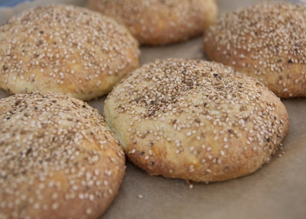 Tipp: Gegen Ende der Backzeit können die Brötchen (Fladen) nach Belieben mit Sesam, Leinsamen oder anderen Lieblingssamen und Gewürzen bestreut werden.