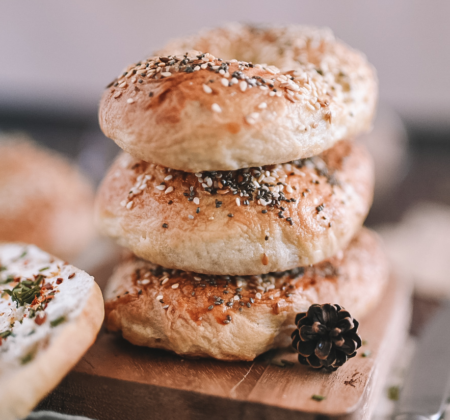 Diese heute weltweit bekannten Brötchen stammen ursprünglich aus Polen. Das jüdische Gebäck wurde schnell zu einem beliebten Frühstück in den USA. Mit seiner wachsenden Popularität in Europa kehrt der Bagel nun wieder auf den Kontinent zurück, aus dem er einst stammt. Und das ist auch gut so, denn mit Dinkelmehl und einer großzügigen Mischung aus Samen überzeugen sie geschmacklich und texturtechnisch. Bagels werden besonders gern zum Frühstück serviert und passen hervorragend zu cremigen Aufstrichen.