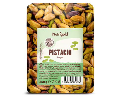 Pistazien sind besonders reich an Kalzium und Eisen, tragen zur Gesundheit von Knochen und Zähnen bei und sind eine gute Unterstützung für Menschen, die unter Eisenmangel-Anämie leiden. Dank ihres hohen Kaliumgehalts eignen sie sich auch für Personen mit Bluthochdruck. Zusammen mit Basilikum und Pinienkernen sind rohe Pistazien die perfekte Basis für ein außergewöhnliches Pesto.