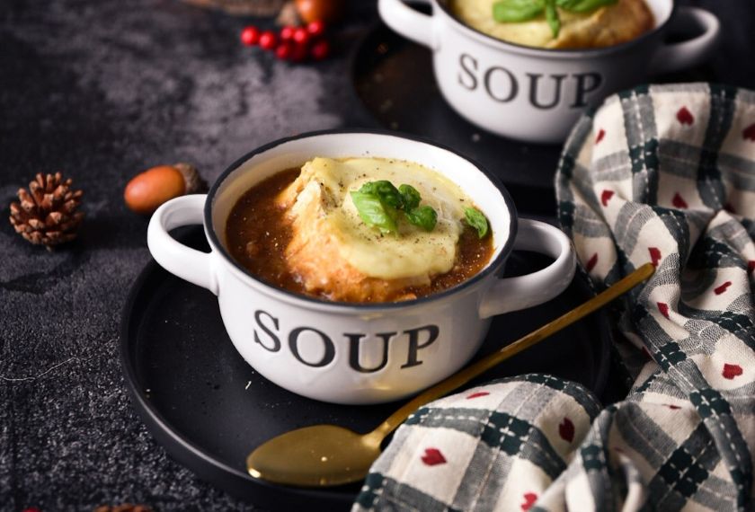 Die traditionelle französische Zwiebelsuppe ist eines der besten Beispiele für Comfort Food. Sie ist warm, lecker, duftend, voller Aromen, kräftig und intensiv – genau richtig für den Winter. Die Franzosen betrachten diese Suppe als ihren Nationalschatz und ihre gastronomischen Wurzeln reichen bis ins alte Rom zurück, wo bereits vor 8.000 Jahren solche kräftigen Suppen zubereitet wurden. In Frankreich wird dieses Gericht seit dem 18. Jahrhundert serviert, in dem es seine heutige Form erhielt.