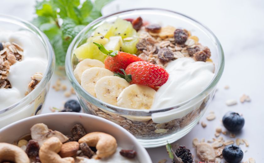 Der Begriff „Parfait” stammt ursprünglich aus der französischen Küche und bezeichnet eine cremige Dessertzubereitung, die traditionell auf Sahne basiert. In modernen Frühstücksvarianten wird das Parfait jedoch neu interpretiert – mit Zutaten wie Joghurt, knusprigem Granola und frischem Obst. Das Ergebnis ist ein harmonisches Zusammenspiel aus cremiger, fruchtiger und knuspriger Textur.