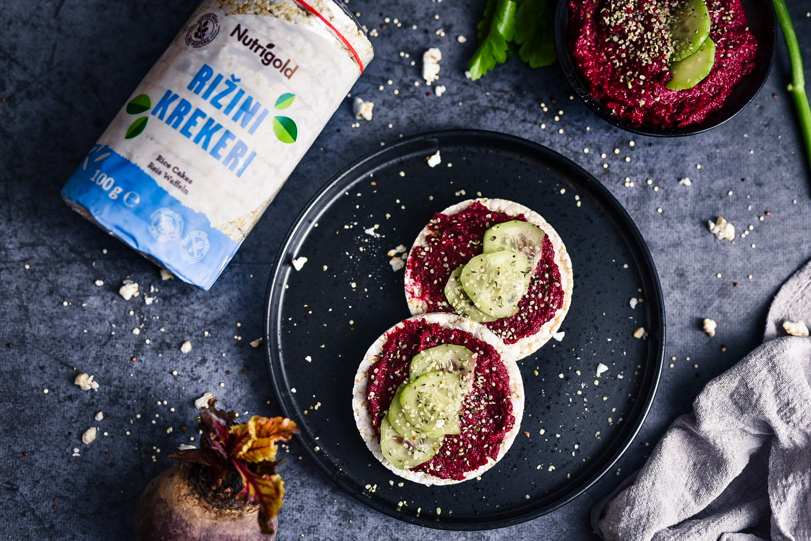 Endlich haben wir sie kombiniert und zusammen mit Knoblauch und Tahini eine kleine Köstlichkeit kreiert, die perfekt zu Reiswaffeln passt. Wenn Sie es lieber etwas herzhafter mögen und Lust auf einen sättigenden Snack haben, probieren Sie den Aufstrich am besten auf einer warmen Scheibe Roggenbrot. Heizen Sie den Ofen vor, schälen Sie die Rote Bete – und schon sind Sie fast am Ziel. Einfacher geht es kaum.