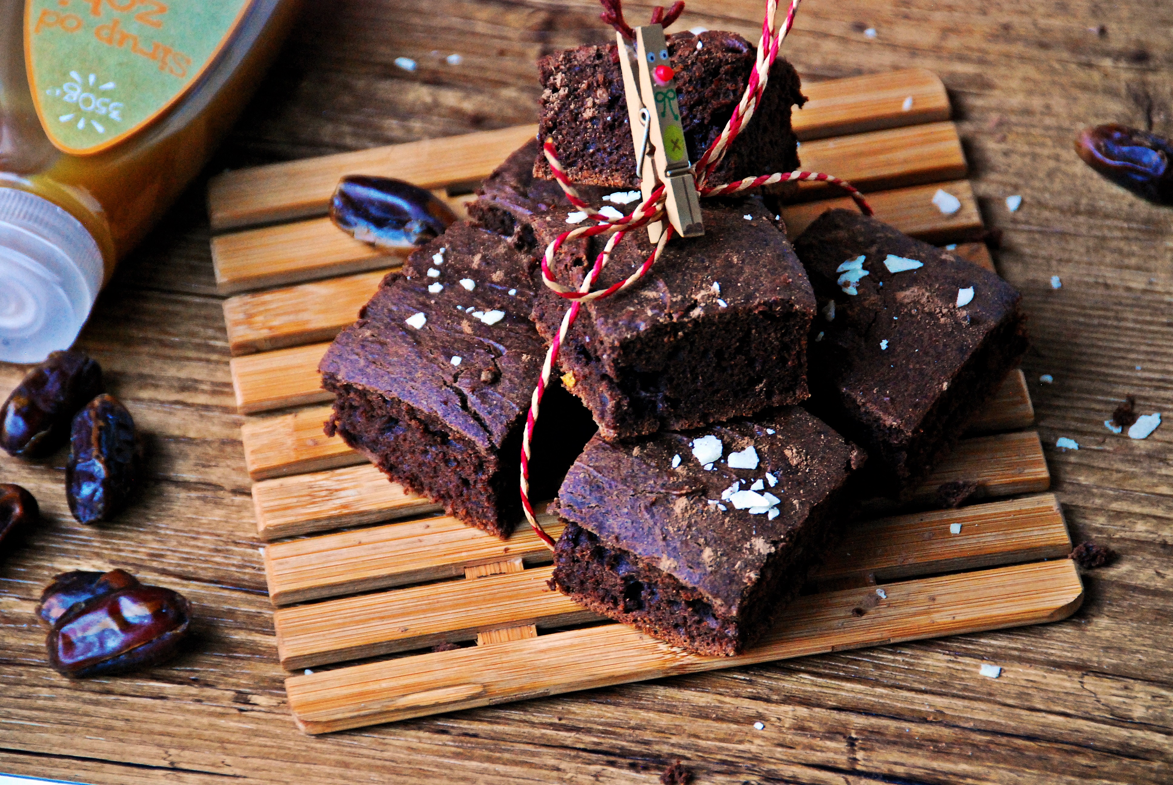Dattel Brownies am Holz Teller