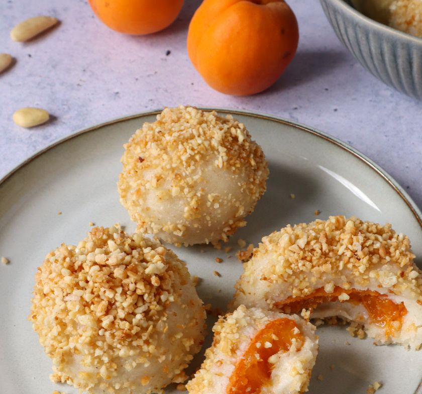 Nutzen Sie die Aprikosensaison, um eines der bekanntesten Sommerdesserts in unseren Breiten zuzubereiten: gefüllte Knödel. Da die klassische Variante recht üppig ausfällt, haben wir uns für eine etwas andere Interpretation entschieden: Diesmal sind die Knödel glutenfrei und vollständig vegan.