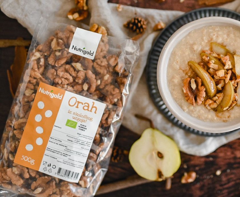 In dieser Variante kommen jedoch nicht irgendwelche Zutaten in die Schüssel, sondern Birnen und Walnüsse. Diese Kombination schmeckt nach Frühling und sättigt zugleich angenehm.