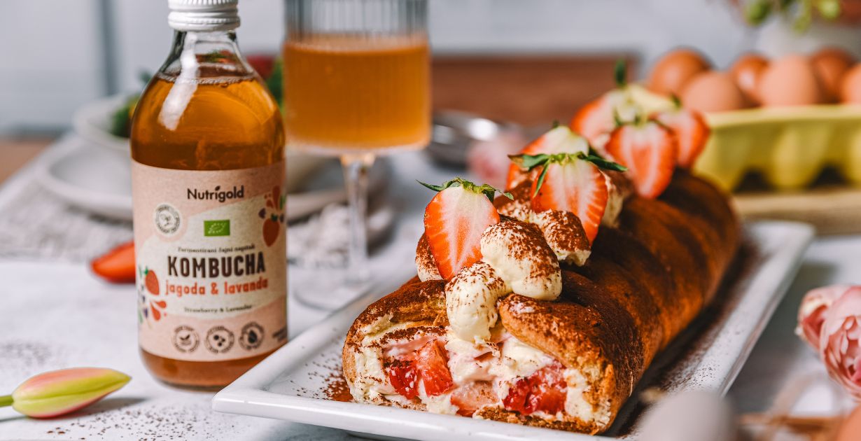 Wer den Titel der Dessertkönigin endgültig für sich beanspruchen möchte, reicht dazu eine eisgekühlte Nutrigold Kombucha Erdbeere & Lavendel und sorgt damit für Begeisterung bis zum letzten Gast.
