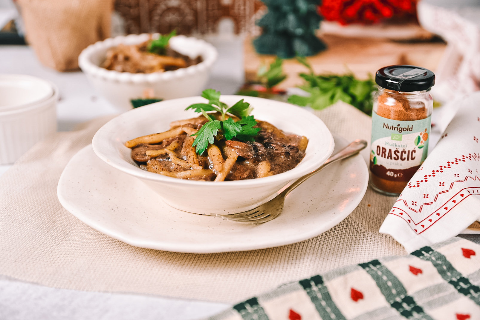 Mit unserer reichhaltigen Pilzsauce ist festlicher Genuss zum Greifen nah. Die Kombination verschiedener Pilzsorten mit der besonderen Note von Tamari verleiht diesem Gericht aromatische Tiefe und macht es zur idealen Ergänzung zu Pasta, Gnocchi, Kartoffeln und vielem mehr.