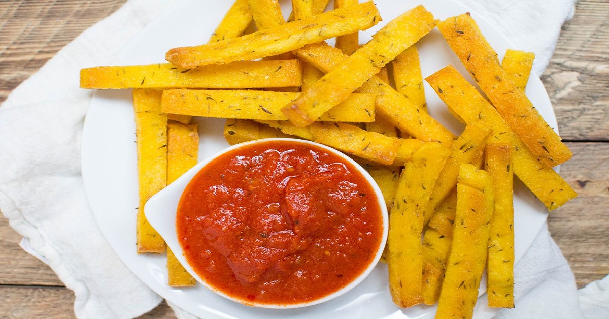 Die knusprigen Polenta-Pommes schmecken besonders gut mit einem hausgemachten Dip oder Ihrer Lieblingssoße: