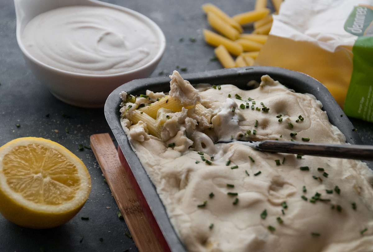 Unsere Béchamelsauce enthält weder Mehl noch Butter oder Milch. Stattdessen enthält sie Cashewnüsse und Mandelmilch. Es ist also Zeit für eine vegane Béchamelsauce für leckere, gebackene Pasta. Mehl und Butter sind allerdings nicht gerade die gesündeste Kombination. Deshalb präsentieren wir Ihnen ein Rezept für eine tolle Alternative, für die ihr nur wenige Zutaten und einen Mixer benötigt.