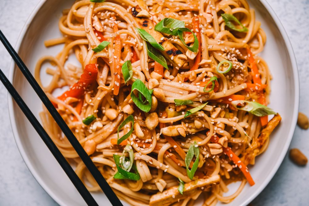 Süß-saure Nudeln mit Gemüse und Tofu sind ein einfaches, aber köstliches Gericht. Es vereint weiche Nudeln, frisches Gemüse wie Karotten, Paprika und Kohl sowie leicht angebratenen Tofu für eine feine Textur.