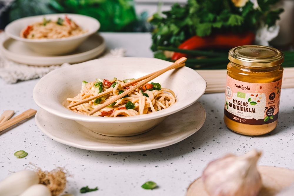 Das Rezept ist nicht nur im Handumdrehen fertig, sondern eignet sich auch perfekt als schnelles Abendessen oder veganer Partyhit. Die Frische von Gurke und Paprika bildet einen schönen Kontrast zur cremigen Sauce, und Frühlingszwiebeln und Erdnüsse obendrauf machen das Gericht zu einem ganz besonderen Erlebnis.