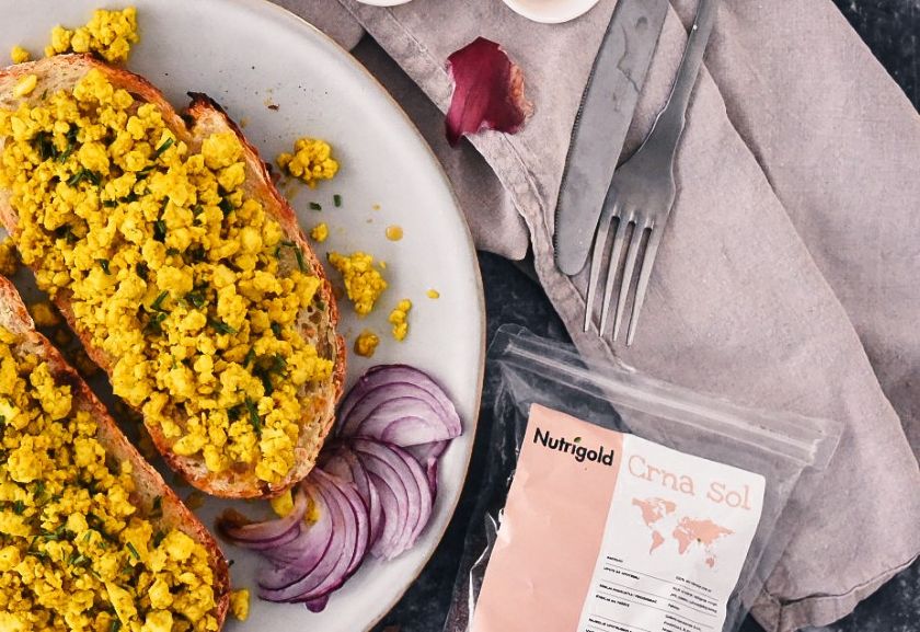 Zerbröselter Tofu mit einem Schuss Pflanzendrink – meist Sojadrink – sorgt für die typische, saftige Rührei-Textur, wie wir sie alle vom Frühstückstisch kennen. Wenn Sie auch geschmacklich ganz nah ans Original kommen möchten, greifen Sie zu einer besonderen Zutat: schwarzes Salz (Kala Namak). Es riecht intensiv, verleiht dem Gericht aber das authentische „Ei-Aroma“.