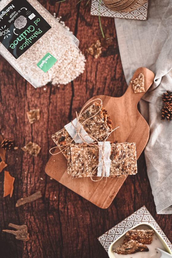 Die schmackhaften und nährstoffreichen Quinoaflocken eignen sich gut als Frühstück oder Snack. In Kombination mit verschiedenen Samen lassen sich daraus knusprige Cracker zubereiten, die hervorragend zu Aufstrichen, Saucen und verschiedenen Dips passen!