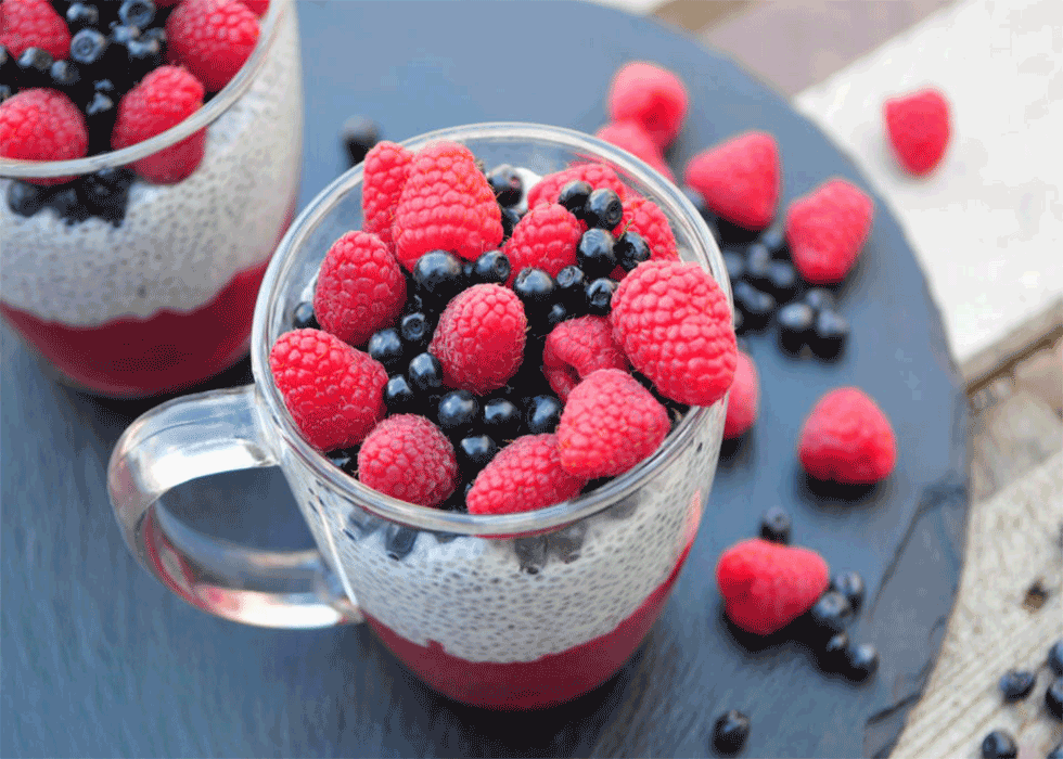 Ob aus Tapiokaperlen oder Tapiokastärke – häufig wird daraus ein süßer Pudding zubereitet. In Kombination mit Chiasamen, die für ihren Gehalt an Omega-3-Fettsäuren und Ballaststoffen bekannt sind, entsteht ein besonders cremiges Dessert mit interessanter Textur.