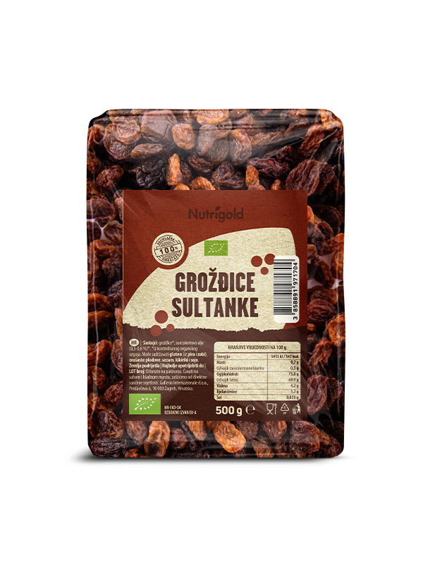 Die köstliche Nutrigold Sultaninen, reich an süßen Aromen, sind ein Bio-Produkt aus kontrolliert biologischem Anbau, das durch einen sorgfältigen Trocknungsprozess gewonnen wird.