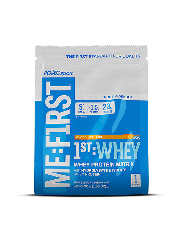 Das Molkenprotein mit Schokoladen- und Jaffa-Geschmack ist in einer praktischen 30-Gramm-Packung erhältlich, mit der Sie den cremigsten Shake nach dem Training zubereiten können!